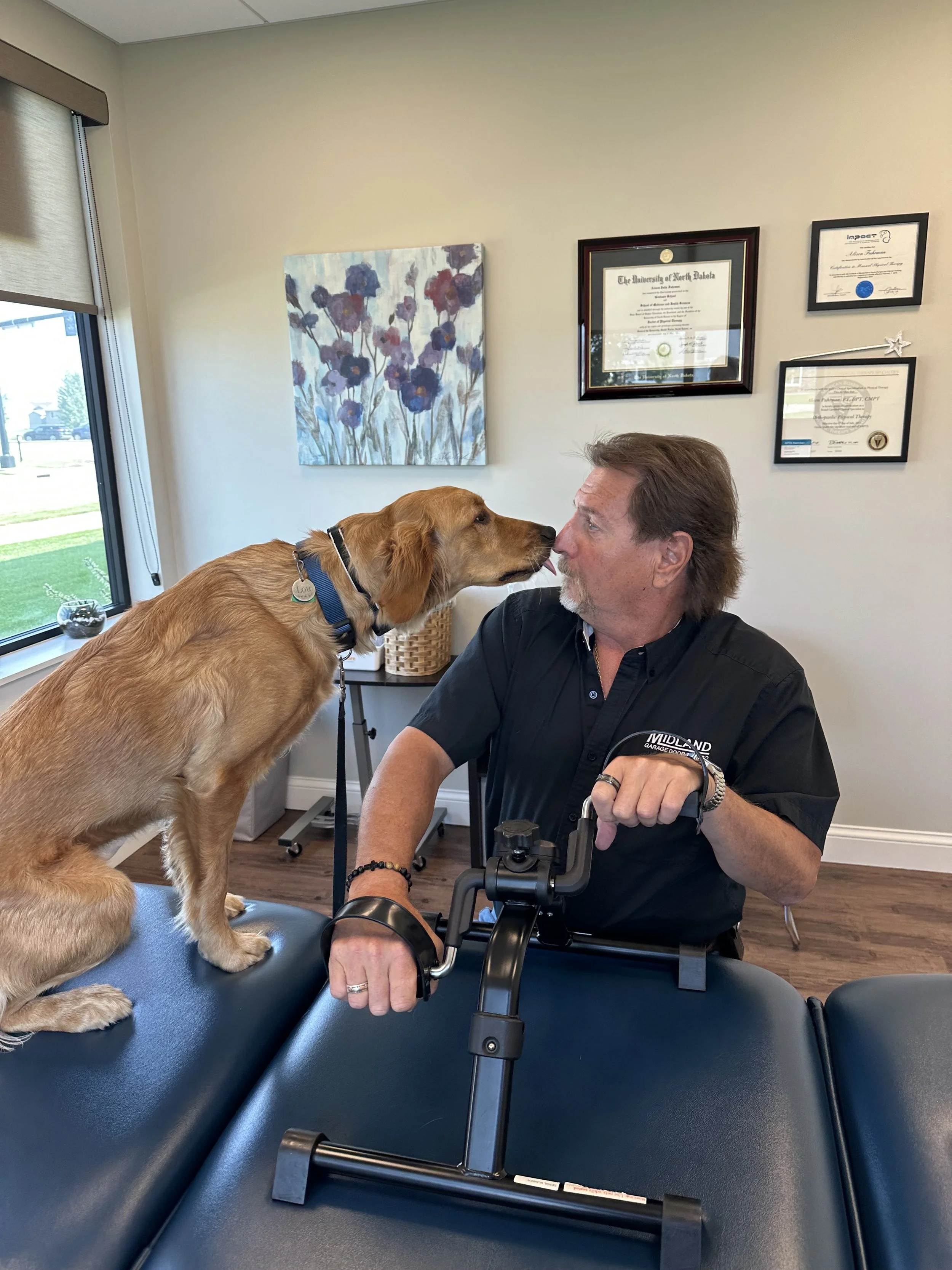 Lou makes sure patients do their exercises!